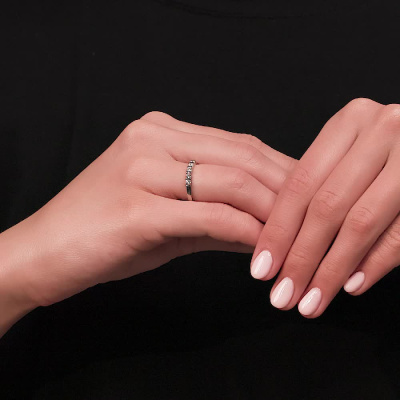 Кольцо с 5 бриллиантами природными, 0.3 карат, огранка круг 57 граней, цвет 3, чистота 6, тип огранки А; Платина 950 пробы.