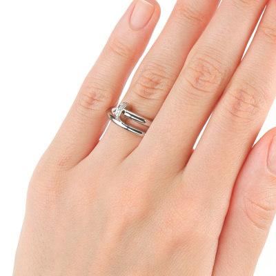 Кольцо с 20 бриллиантами природными, 0.08 карат, огранка круг 57 граней, цвет 3, чистота 6, тип огранки А; 4 бриллиантами природными, 0.008 карат, огранка круг 57 граней, цвет 3, чистота 6, тип огранки А; Платина 950 пробы.