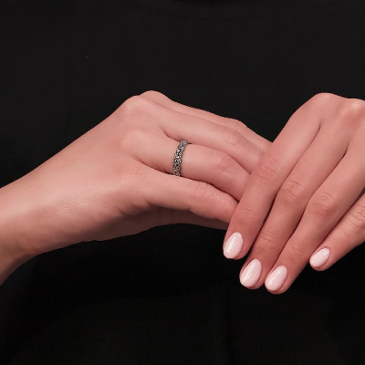 Кольцо с 17 бриллиантами, 0.37 карат, огранка круг 57 граней, цвет 3, чистота 6, тип огранки А; Платина 950 пробы.