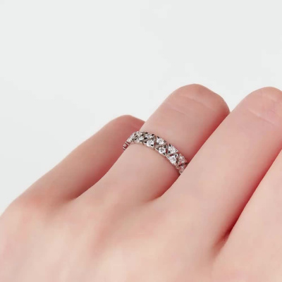 Кольцо с 17 бриллиантами природными, 0.36 карат, огранка круг 57 граней, цвет 3, чистота 6, тип огранки А; Платина 950 пробы.