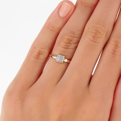 Кольцо с 16 бриллиантами природными, 0.04 карат, огранка круг 17 граней, цвет 2, чистота 2, тип огранки А; Розовое золото 585 пробы.