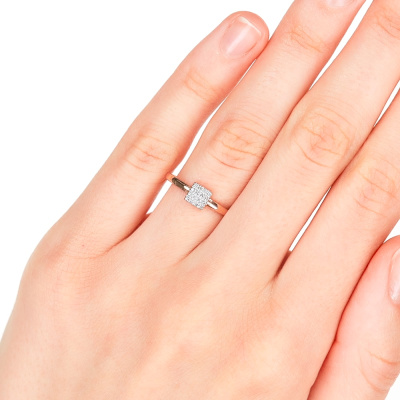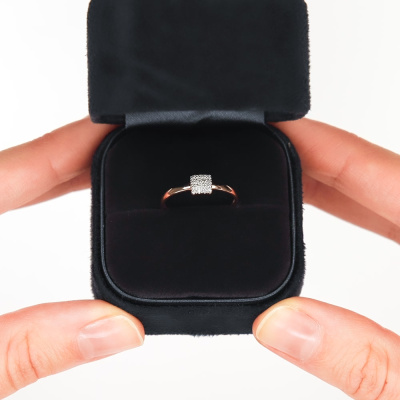 Кольцо с 16 бриллиантами природными, 0.04 карат, огранка круг 17 граней, цвет 2, чистота 2, тип огранки Б; Розовое золото 585 пробы.
