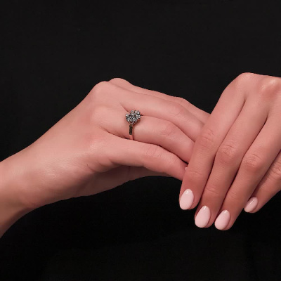 Кольцо с 7 бриллиантами природными, 0.25 карат, огранка круг 57 граней, цвет 3, чистота 6, тип огранки А; Розовое золото 585 пробы.