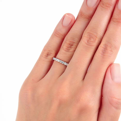 Кольцо с 11 бриллиантами природными, 0.49 карат, огранка круг 57 граней, цвет 3, чистота 6, тип огранки А; Белое золото 585 пробы.
