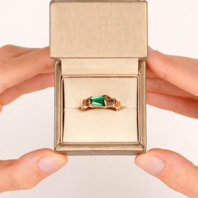 Кольцо, вставка: наноситал изумруд, 0.96 карат; Розовое золото 585 пробы.