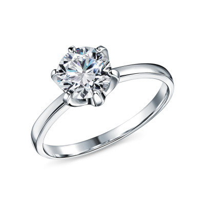 Кольцо с 1 бриллиантом природным, 1.5 карат, огранка круг 57 граней, цвет 6, чистота 6, тип огранки А; Белое золото 585 пробы.