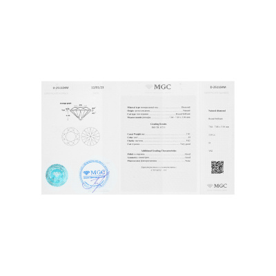Кольцо с 1 бриллиантом природным, 2.01 карат, огранка круг 57 граней, цвет 5, чистота 5, тип огранки А; Белое золото 585 пробы.