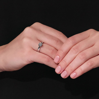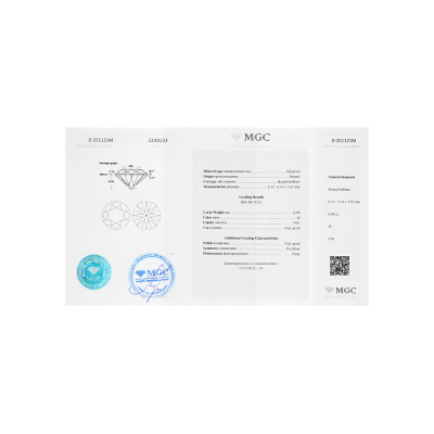 Кольцо с 1 бриллиантом природным, 0.9 карат, огранка круг 57 граней, цвет 1, чистота 4, тип огранки А; Белое золото 585 пробы.