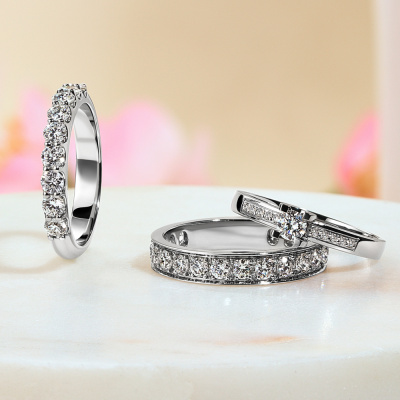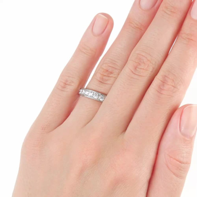 Кольцо с 22 бриллиантами, 1.35 карат, огранка круг 57 граней, цвет 3, чистота 6, тип огранки А; 44 бриллиантами, 0.07 карат, огранка круг 57 граней, цвет 3, чистота 6, тип огранки А; Платина 950 пробы.