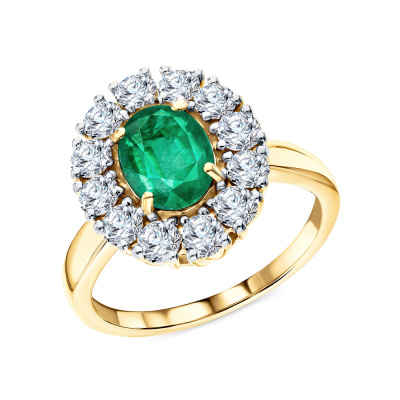 Золотое кольцо с бриллиантами природными и изумрудами природными