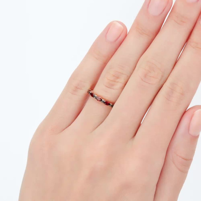 Кольцо с 5 гранатами природными, 0.45 карат; Розовое золото 585 пробы.