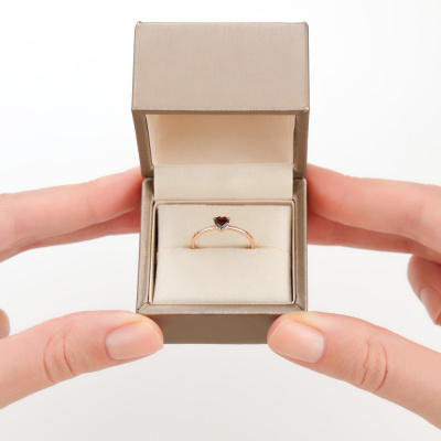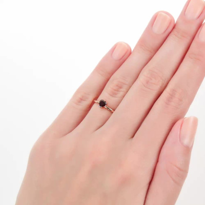 Кольцо с 1 гранатом природным, 0.3 карат; Розовое золото 585 пробы.