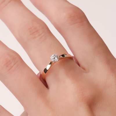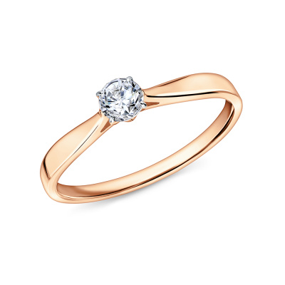 Кольцо с 1 бриллиантом выращенным, 0.23 карат, огранка круг 57 граней, цвет 3, чистота 5, тип огранки А; Розовое золото 585 пробы.