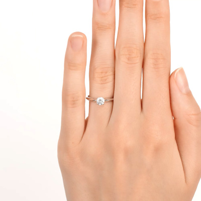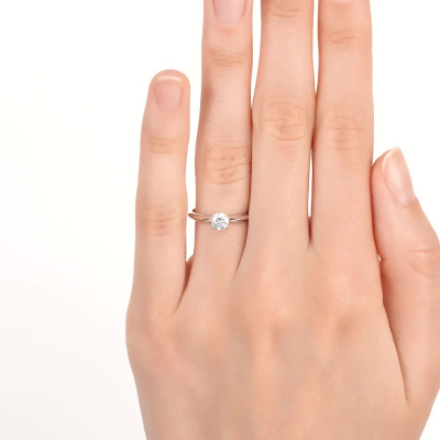 Кольцо с 1 бриллиантом выращенным, 0.33 карат, огранка круг 57 граней, цвет 4, чистота 5, тип огранки А; Белое золото 585 пробы.