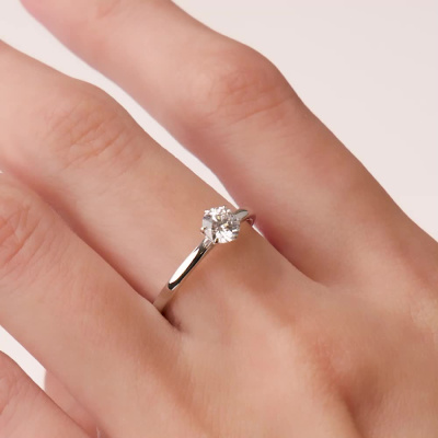 Кольцо с 1 бриллиантом выращенным, 0.4 карат, огранка круг 57 граней, цвет 4, чистота 5, тип огранки А; Белое золото 585 пробы.