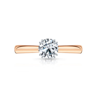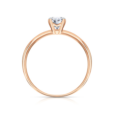 Кольцо с 1 бриллиантом выращенным, 0.74 карат, огранка круг 57 граней, цвет 4, чистота 5, тип огранки А; Розовое золото 585 пробы.