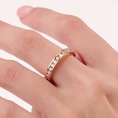Кольцо с 25 бриллиантами выращенными, 0.87 карат, огранка круг 57 граней, цвет 3, чистота 5, тип огранки А; Розовое золото 585 пробы.