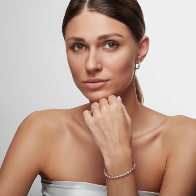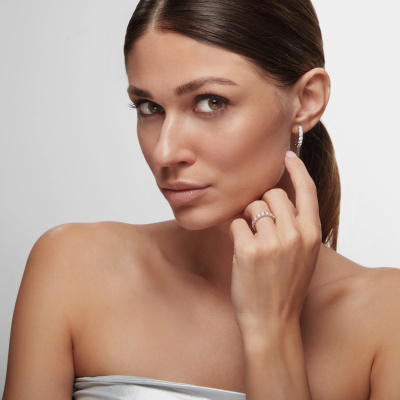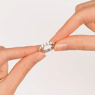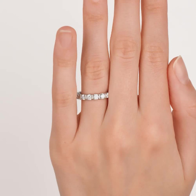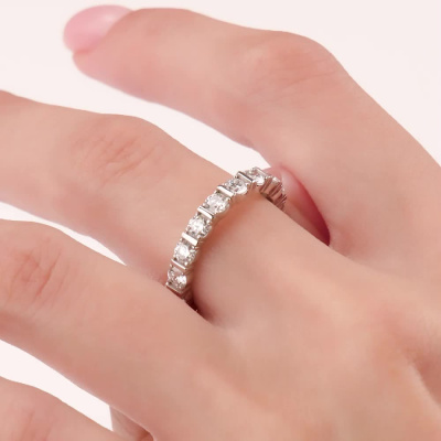 Кольцо с 16 бриллиантами выращенными, 1.59 карат, огранка круг 57 граней, цвет 3, чистота 5, тип огранки А; Белое золото 585 пробы.