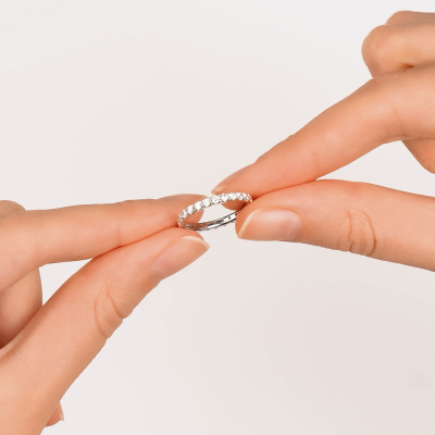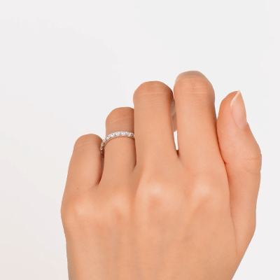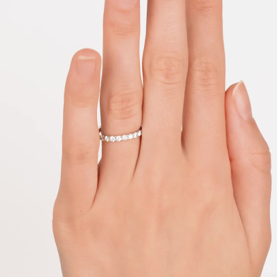 Кольцо с 26 бриллиантами выращенными, 0.82 карат, огранка круг 57 граней, цвет 3, чистота 5, тип огранки А; Белое золото 585 пробы.