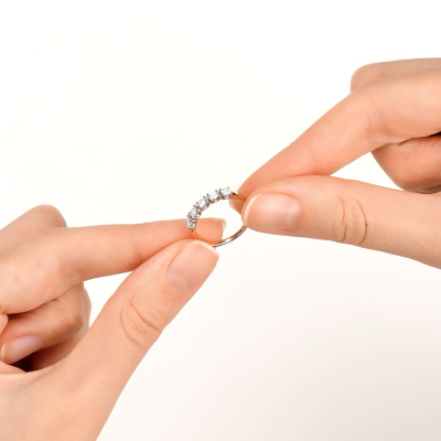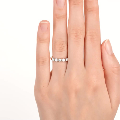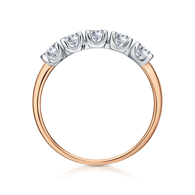 Кольцо с 5 бриллиантами выращенными, 0.39 карат, огранка круг 57 граней, цвет 3, чистота 5, тип огранки А; Розовое золото 585 пробы.
