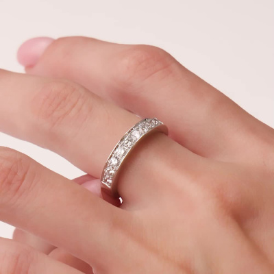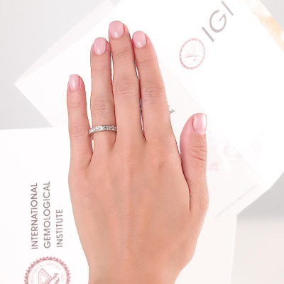 Кольцо с 9 бриллиантами выращенными, 0.47 карат, огранка круг 57 граней, цвет 3, чистота 6, тип огранки А; Белое золото 585 пробы.