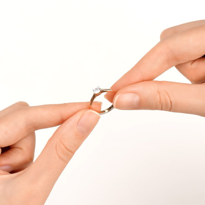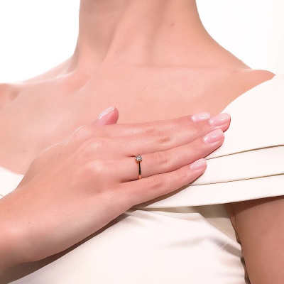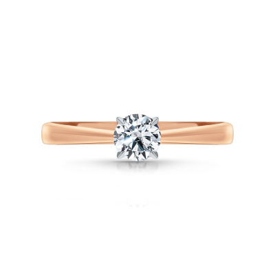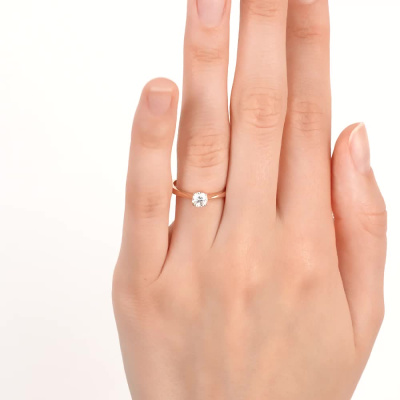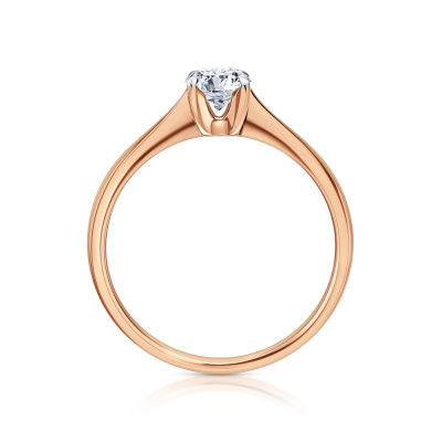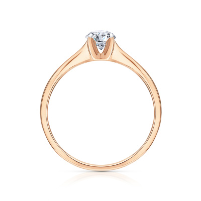 Кольцо с 1 бриллиантом выращенным, 0.35 карат, огранка круг 57 граней, цвет 4, чистота 6, тип огранки А; Розовое золото 585 пробы.