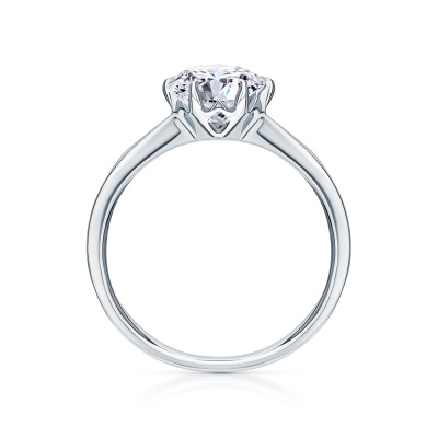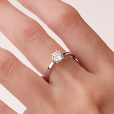 Кольцо с 1 бриллиантом выращенным, 0.74 карат, огранка круг 57 граней, цвет 4, чистота 6, тип огранки А; Белое золото 585 пробы.