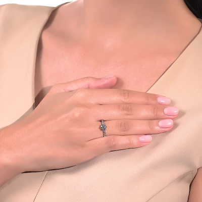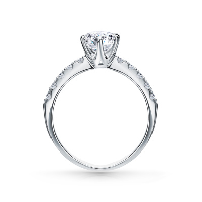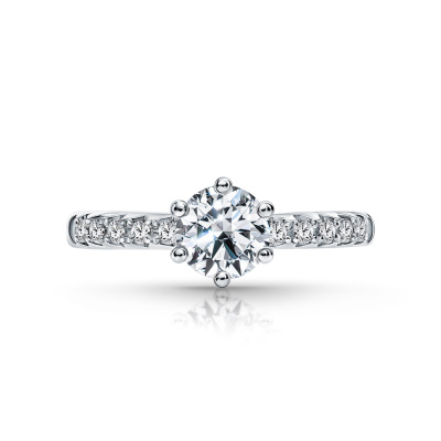 Кольцо с 1 бриллиантом выращенным, 0.72 карат, огранка круг 57 граней, цвет 3, чистота 6, тип огранки А; 10 бриллиантами выращенными, 0.14 карат, огранка круг 57 граней, цвет 3, чистота 6, тип огранки А; Белое золото 585 пробы.
