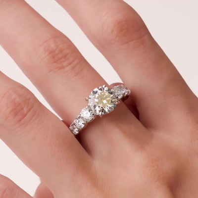 Кольцо с 1 бриллиантом выращенным, 2.07 карат, огранка круг 57 граней, цвет 4, чистота 5, тип огранки А; 2 бриллиантами выращенными, 0.44 карат, огранка круг 57 граней, цвет 3, чистота 5, тип огранки А; 2 бриллиантами выращенными, 0.29 карат, огранка круг 57 граней, цвет 3, чистота 5, тип огранки А; 2 бриллиантами выращенными, 0.22 карат, огранка круг 57 граней, цвет 3, чистота 5, тип огранки А; 2 бриллиантами выращенными, 0.17 карат, огранка круг 57 граней, цвет 3, чистота 5, тип огранки А; 2 бриллиантами выращенными, 0.13 карат, огранка круг 57 граней, цвет 3, чистота 5, тип огранки А; Белое золото 585 пробы.