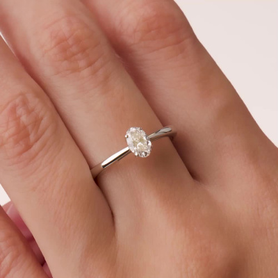 Кольцо с 1 бриллиантом выращенным, 0.35 карат, огранка овал 57 граней, цвет 4, чистота 5, тип огранки А; Белое золото 585 пробы.