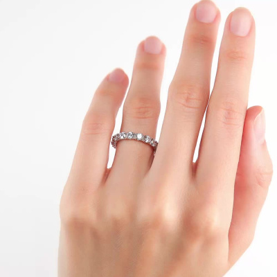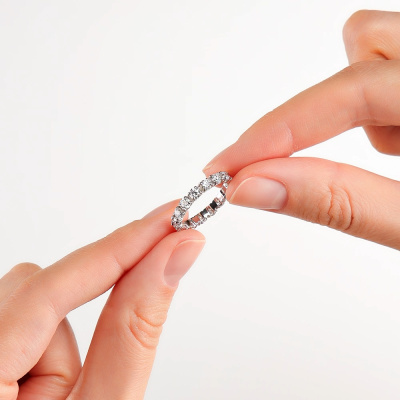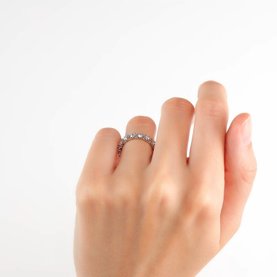 Кольцо с 15 бриллиантами выращенными, 1.68 карат, огранка круг 57 граней, цвет 3, чистота 5, тип огранки А; Белое золото 585 пробы.