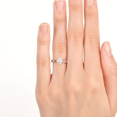 Кольцо с 1 бриллиантом выращенным, 0.52 карат, огранка круг 57 граней, цвет 4, чистота 6, тип огранки А; Белое золото 585 пробы.