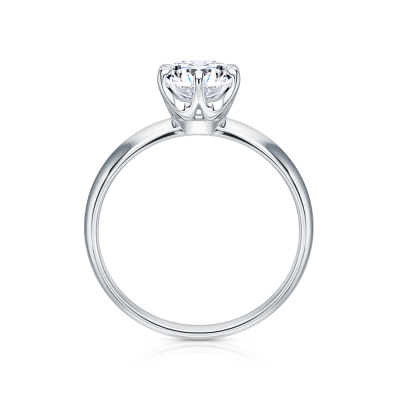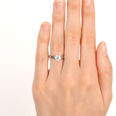 Кольцо с 1 бриллиантом выращенным, 1 карат, огранка круг 57 граней, цвет 4, чистота 5, тип огранки А; Белое золото 585 пробы.