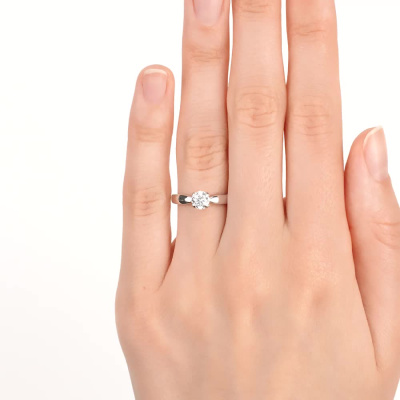 Кольцо с 1 бриллиантом выращенным, 0.53 карат, огранка круг 57 граней, цвет 4, чистота 6, тип огранки А; Белое золото 585 пробы.