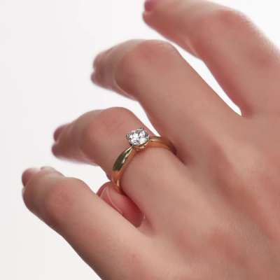 Кольцо с 1 бриллиантом выращенным, 0.56 карат, огранка круг 57 граней, цвет 4, чистота 5, тип огранки А; Желтое золото 585 пробы.