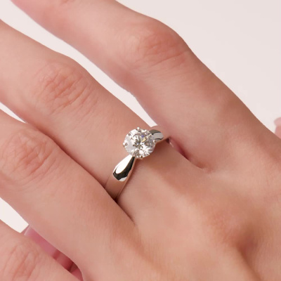 Кольцо с 1 бриллиантом выращенным, 1.02 карат, огранка круг 57 граней, цвет 4, чистота 5, тип огранки А; Белое золото 585 пробы.