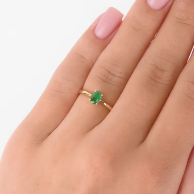 Кольцо с 1 изумрудом природным, 0.39 карат, цвет 3, чистота 3, тип огранки Б; Желтое золото 585 пробы.