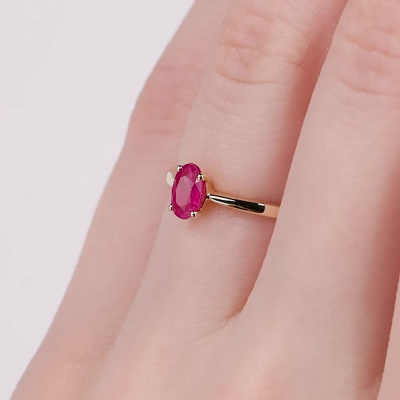 Кольцо с 1 рубином природным, 0.56 карат, цвет 2, чистота 2, тип огранки Б; Желтое золото 585 пробы.
