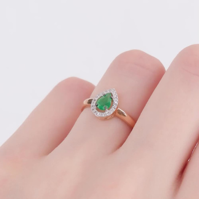 Кольцо с 22 бриллиантами природными, 0.06 карат, огранка круг 17 граней, цвет 2, чистота 3, тип огранки А; 1 изумрудом природным, 0.37 карат, цвет 3, чистота 3, тип огранки Б; Розовое золото 585 пробы.