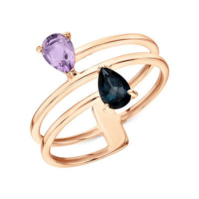 Золотое кольцо с топазом природным и аметистом природным