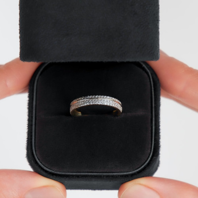 Кольцо с 81 бриллиантом природным, 0.24 карат, огранка круг 17 граней, цвет 2, чистота 2, тип огранки А; Желтое золото 585 пробы.