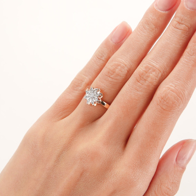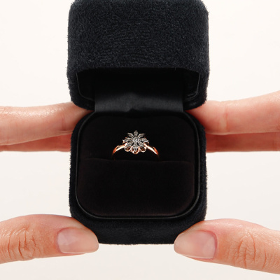 Кольцо с 1 бриллиантом природным, 0.01 карат, огранка круг 57 граней, цвет 3, чистота 6, тип огранки А; 8 бриллиантами природными, 0.03 карат, огранка круг 17 граней, цвет 2, чистота 2, тип огранки А; 8 бриллиантами природными, 0.01 карат, огранка круг 17 граней, цвет 2, чистота 2, тип огранки А; Розовое и белое золото 585 пробы.