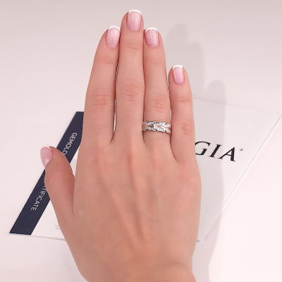 Кольцо с 12 бриллиантами природными, 0.15 карат, огранка круг 57 граней, цвет 3, чистота 6, тип огранки А; 24 бриллиантами природными, 0.09 карат, огранка круг 17 граней, цвет 2, чистота 2, тип огранки А; Розовое золото 585 пробы.