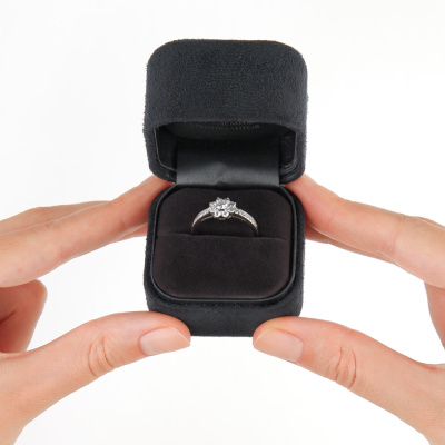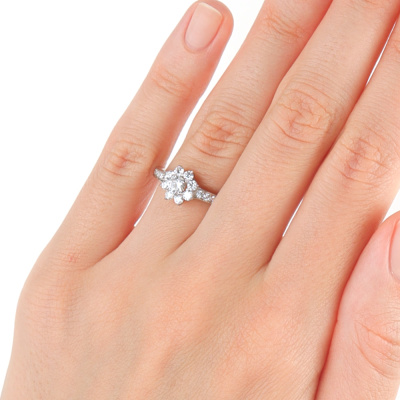 Кольцо с 1 бриллиантом природным, 0.23 карат, огранка круг 57 граней, цвет 3, чистота 6, тип огранки А; 8 бриллиантами природными, 0.32 карат, огранка круг 57 граней, цвет 3, чистота 6, тип огранки А; 4 бриллиантами природными, 0.05 карат, огранка круг 57 граней, цвет 3, чистота 6, тип огранки А; 2 бриллиантами природными, 0.02 карат, огранка круг 57 граней, цвет 3, чистота 6, тип огранки А; 2 бриллиантами природными, 0.01 карат, огранка круг 57 граней, цвет 3, чистота 6, тип огранки А; 6 бриллиантами природными, 0.03 карат, огранка круг 17 граней, цвет 2, чистота 2, тип огранки А; Белое золото 585 пробы.