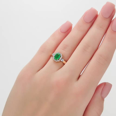 Золотое кольцо с бриллиантами природными и изумрудом природным