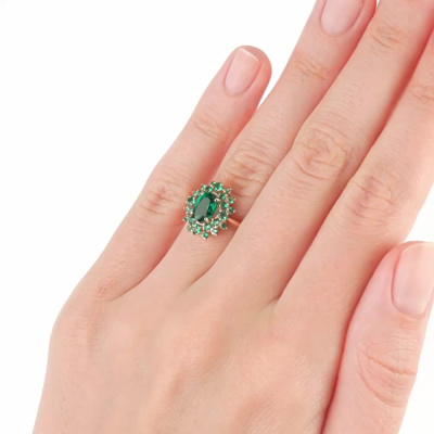 Золотое кольцо с изумрудами выращенными