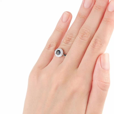 Кольцо с 42 бриллиантами природными, 0.12 карат, огранка круг 17 граней, цвет 2, чистота 2, тип огранки А; 1 сапфиром природным, 0.62 карат, цвет 2, чистота 2, тип огранки В; Белое золото 585 пробы.