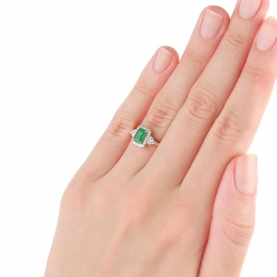 Золотое кольцо с бриллиантами природными и изумрудом природным
