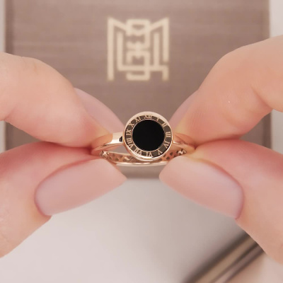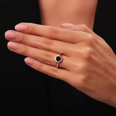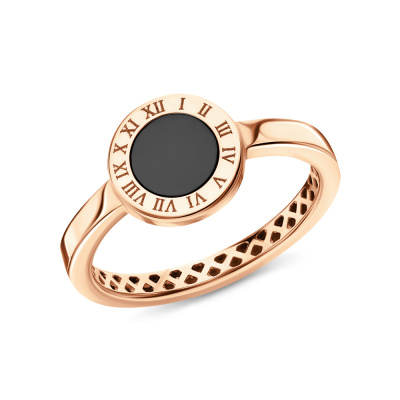 Кольцо с 1 ониксом черным природным; Розовое золото 585 пробы.