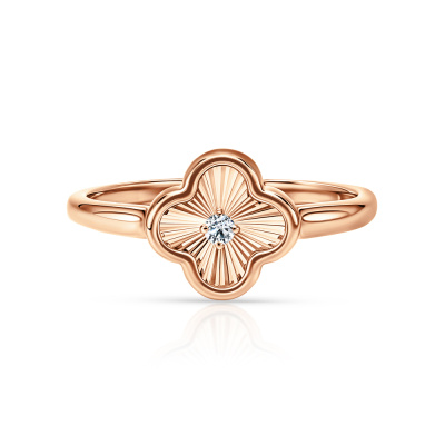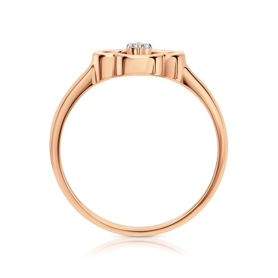 Кольцо с 1 бриллиантом природным, 0.03 карат, огранка круг 57 граней, цвет 3, чистота 6; Розовое золото 585 пробы.